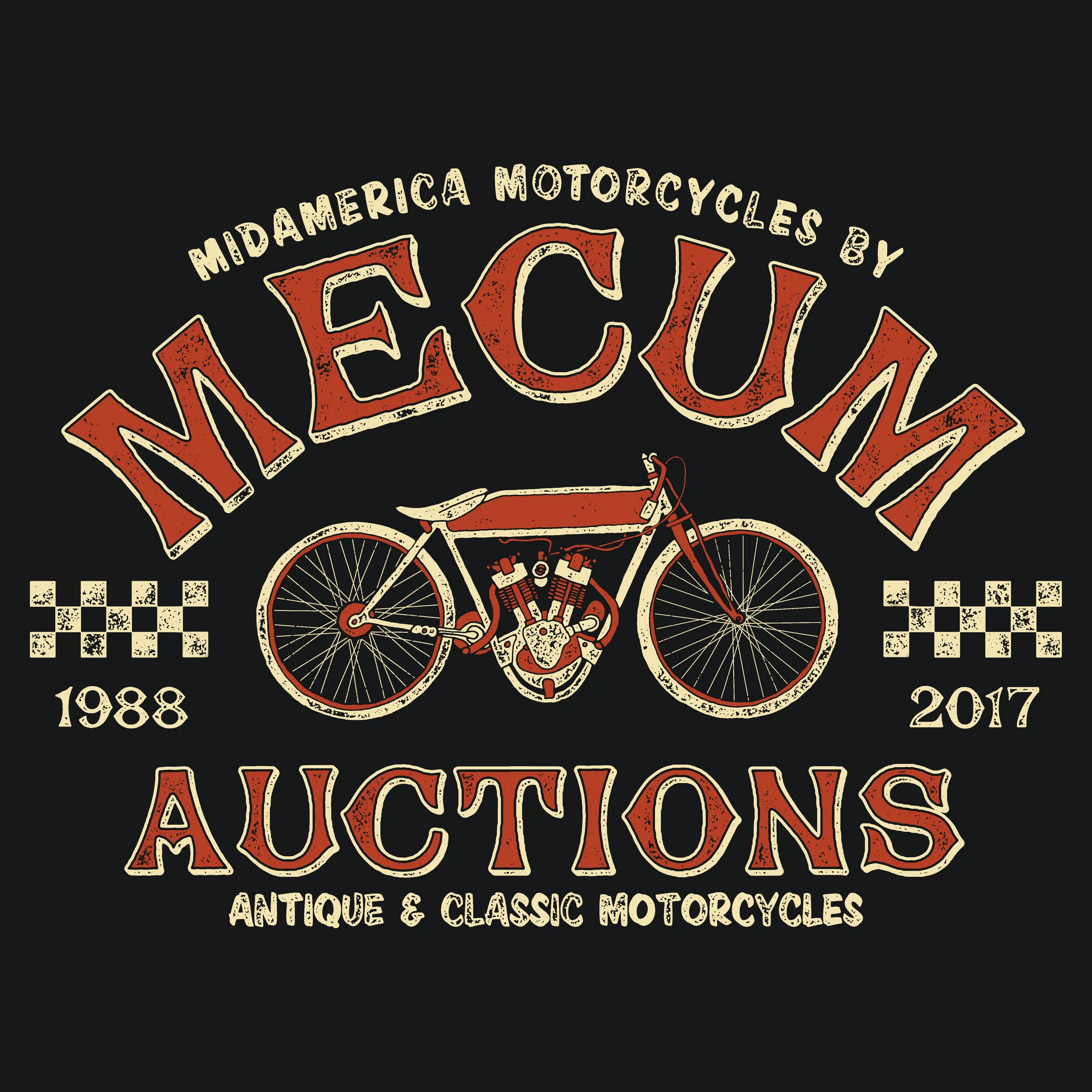 Hand drawn shirt designs for the motorcycle division of the worlds largest collector car and motorcycle auction: Mecum Auctions
